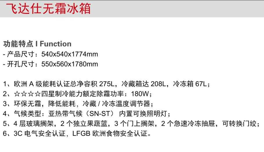 飛達仕無霜冰箱