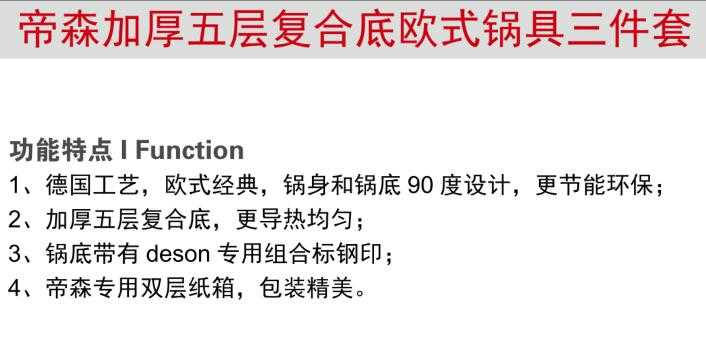 帝森加厚五層復合底歐式鍋具三件套