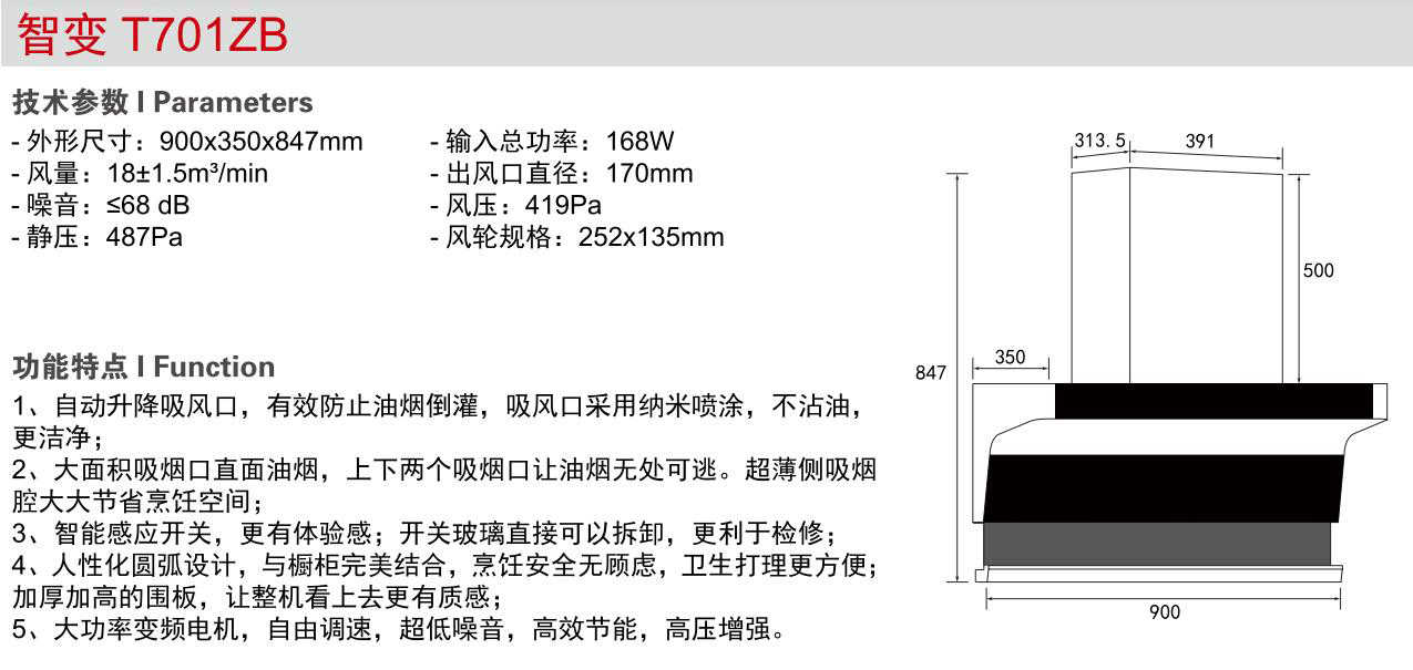 自動升降吸風(fēng)口,有效防止油煙倒灌....